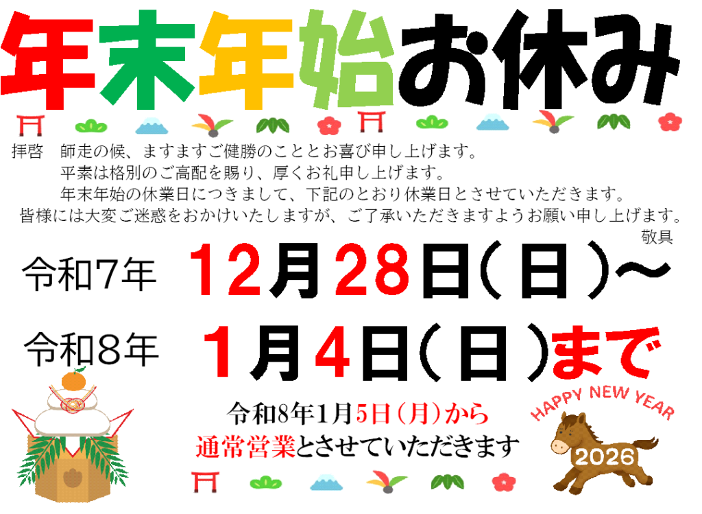 年末年始のお休みのお知らせです。